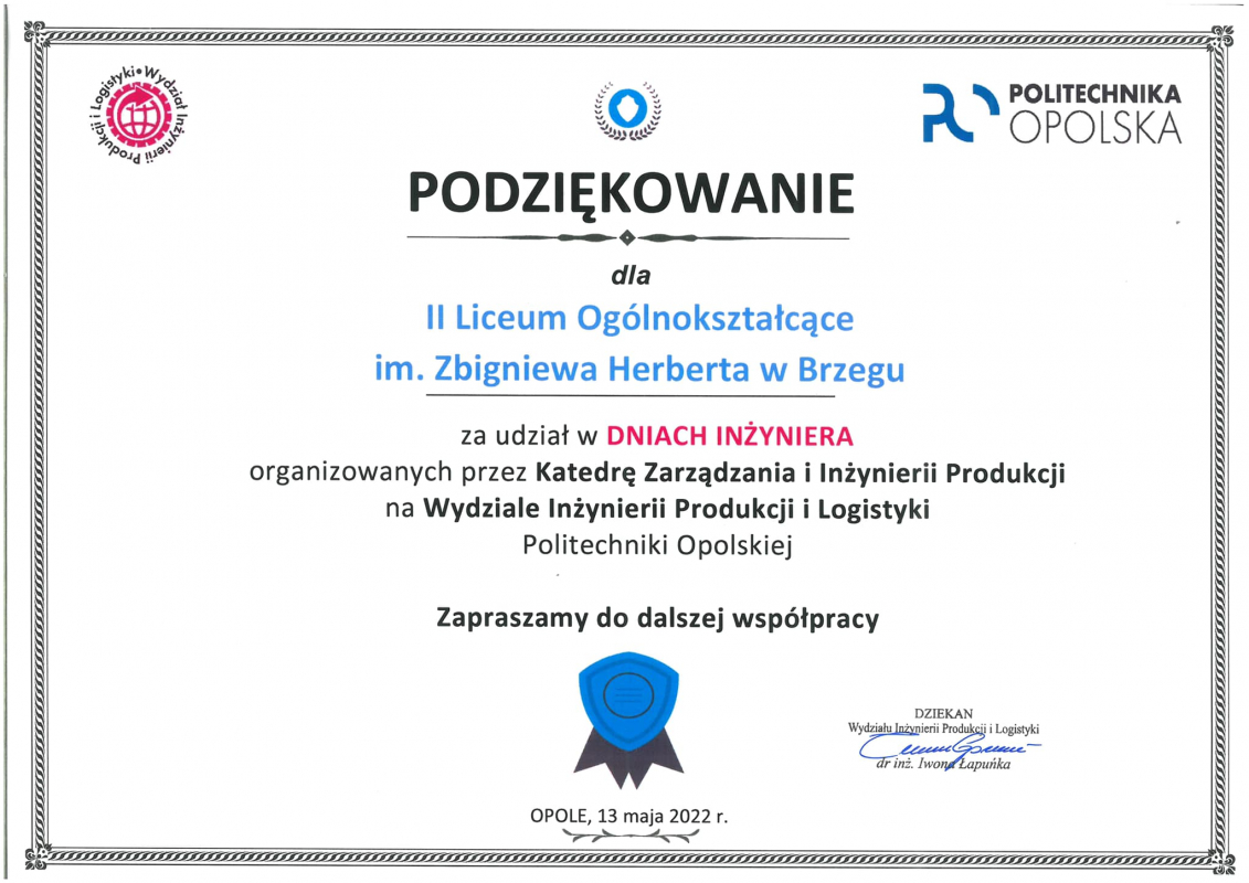 Klasa 3BN w dniu 13 maja br. Uczestniczyła w warsztatach na Politechnice Opolskiej organizowanych na Wydziale Inżynierii Produkcji i Logistyki. Próbkę zajęć w zakresie Machine Learning jedna grupa uczniów zaliczyła celująco, a druga grupa ambitnie rozwijała kreatywność w projekcie kaskadowym w ramach gry symulacyjnej Fort Boyard. Dziękujemy pracownikom naukowym Politechniki Opolskiej za inspirujące zajęcia w ramach Dni Inżyniera.